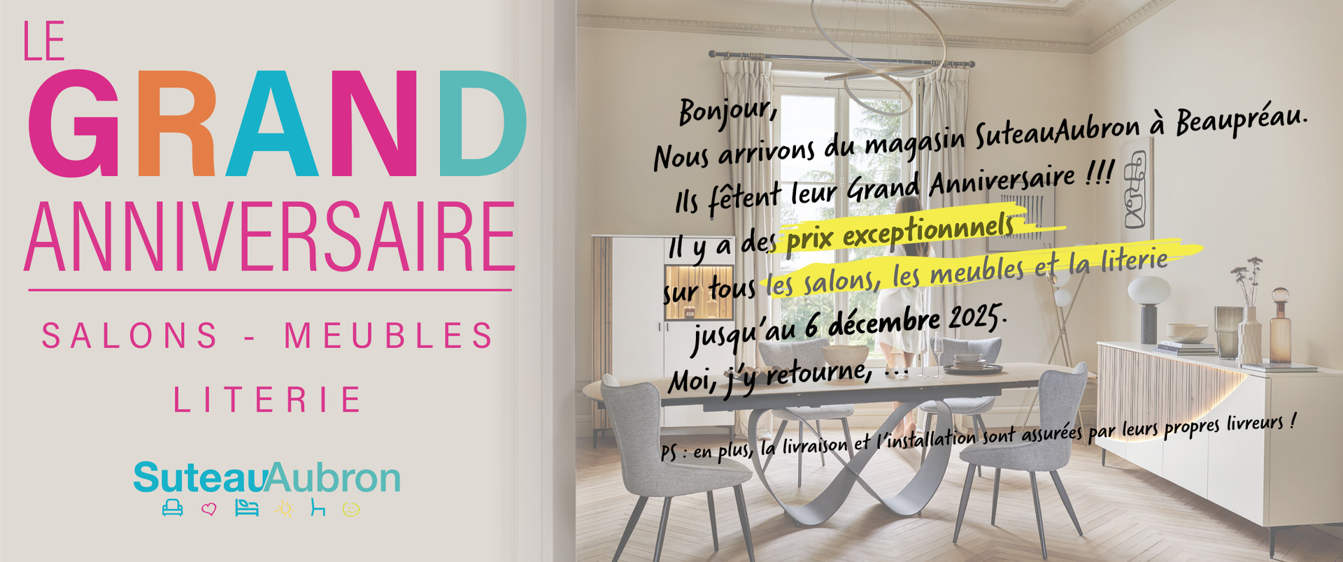 SuteauAubron est un magasin de meubles spécialisé dans le moyen et haut de gamme.
