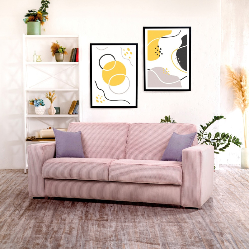 Gallery Tendances Dimensions : l 206 x h 90 x p 99 cm Avec son design contemporain et son élégant tissu côtelé, le canapé convertible MELITA s’impose comme une pièce maîtresse aussi belle que fonctionnelle. Derrière ses lignes épurées se cache un véritable cocon de confort : son assise généreusement garnie de mousse haute résilience promet des moments de détente incomparables. Et quand vient l’heure du repos, MELITA se transforme en un clin d’œil en un lit spacieux, grâce à un mécanisme discret et facile à manipuler. Proposé en plusieurs dimensions et en version angle, il s’adapte parfaitement à votre intérieur. Pratique au quotidien, il est entièrement déhoussable pour un entretien simplifié. - Structure métallique, accoudoirs et bandeaux en contreplaqué - Suspension sur sangles élastiques haute résistance - Garnissage assise (40 kg/m³) et dossier (21 kg/m³) en mousse polyuréthane expansé haute résilience - Sommier électro-soudé - Sangles sous les assises - Dossier range-oreillers - Tissu totalement déhoussable - Existe également en longueur 186 cm et 226 cm - Ajout d’une méridienne possible - Matelas DREAM 140 x 190 H17 : âme en en mousse de polyuréthane expansé, densité 30 kg/m³, coutil 100% polyester matelassé effet "cellule" - Fabriqué en Italie