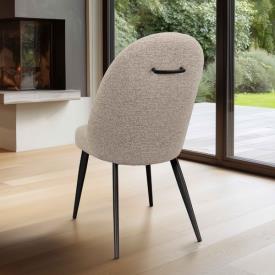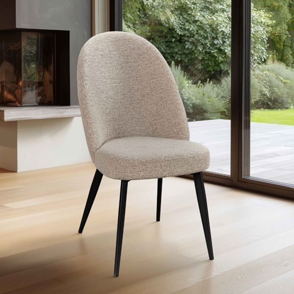 Gallery Tendances Dimensions : l 50 x h 96 x p 63 cm Apportez une note de caractère à votre salle à manger avec la chaise ÉLINA. Son dossier arrondi et son tissu chiné texturé en font une pièce aussi élégante que confortable. Déclinée en quatre coloris tendance, elle s’adapte à toutes vos envies déco : du blanc crème lumineux au vert bouteille profond. Avec son assise moelleuse et son dossier haut, elle invite naturellement à la convivialité. On adore son détail malin : une poignée intégrée au dossier pour la déplacer en un clin d’œil. N’hésitez pas à mixer les couleurs pour un rendu unique et plein de vie ! - Assise et dossier fixes - Structure : tube fer et coque contreplaqué - Piétement fer finition époxy gris anthracite - Rembourrage : mousse polyuréthane 26 kg/m³ - Hauteur assise : 49 cm - Tissu 100% polyester - Poignée à l'arrière du dossier - Disponible en 4 coloris : blanc crème, vert bouteille, terracotta et gris anthracite
