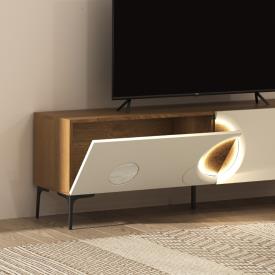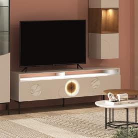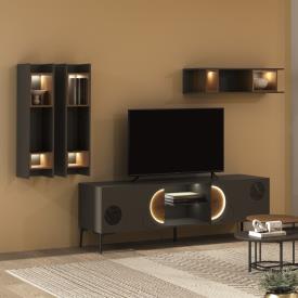 Gallery Tendances Dimensions : l 180 x h 58 x p 45,2 cm Pensé dans une approche de composition, le meuble TV AQUA dialogue avec les volumes de votre intérieur. Personnalisez votre espace TV en choisissant parmi les différentes configurations et modules muraux assortis, pour créer un ensemble cohérent et équilibré. La force de ce modèle réside dans son élégante discrétion : il cache avec soin vos équipements (box, câbles, accessoires) derrière ses façades laquées, rythmées par le caractère brut du bois debout et de la céramique. L’éclairage LED optionnel en façade révèle la profondeur des textures et transforme le meuble TV en un véritable point d’attention, contribuant à l’atmosphère sereine de votre salon. - Plateau, base et côtés en mélamine laqué en face ou plaqué chêne 0,6 mm - Portes en MDF standard laquées mates ou brillantes avec applications de bois debout et céramique - Tiroirs en mélamine - Arrière et séparations intérieures en mélamine - Pieds en métal laqué - Plusieurs possibilités de finitions - Façade éclairée LED en option - Différentes configurations possibles : 2 tiroirs ou 1 tiroir + 1 porte abattante ou 2 portes abattantes, avec ou sans niche supérieure / 1 ou 2 tiroirs ou 1 ou 2 portes abattantes + 1 niche droite, gauche ou centrale, avec 1 étagère en verre / ajout de modules muraux - Existe en longueur 150 cm, 180 cm et 200 cm