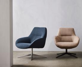Kebe Réf. 370 Dimensions : l 70 x h 81,5 x p 76 cm Ergo Low est la version plus basse et plus compacte du fauteuil Ergo, conçue pour les espaces longues et détentes modernes. Il conserve les lignes douces et organiques caractéristiques de la collection ainsi que l’assise enveloppante, mais dans une interprétation plus légère et discrète. La base pivotante ajoute de la fonctionnalité, tandis que le dossier ergonomique assure un confort au quotidien. Ergo Low s’intègre parfaitement dans un salon, un espace lounge ou un bureau, offrant un confort élégant inspiré du modèle Ergo original. fauteuil lounge