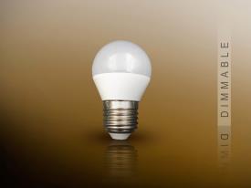 ampoule mini globe opale LED DIMMABLE de 7W. Lumière chaude 3.000K. 560 lumens, équivalente à incandescente de 60W. Rayon de lumière de 180°. Pour douilles E27.