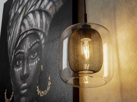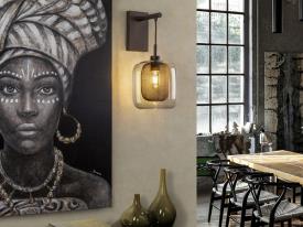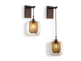 Lampe murale 1 lumière réalisée en métal laqué, couleur chocolat. Double tulipe, intérieur en maille métallique et extérieur en verre.