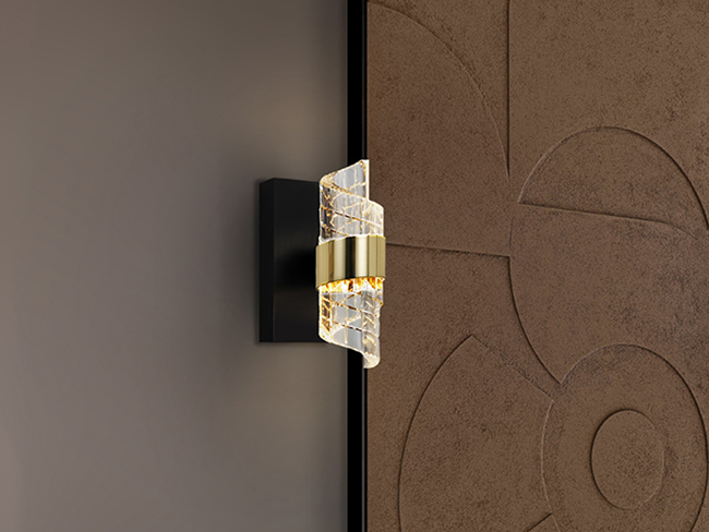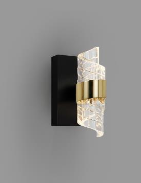 Applique 1 lumière LED. Réalisée en métal finition noir mat et or brillant. Tulipe en acrylique moulé et sculpté au design en spirale. LED 7W. 656 lm. 3.000 K.