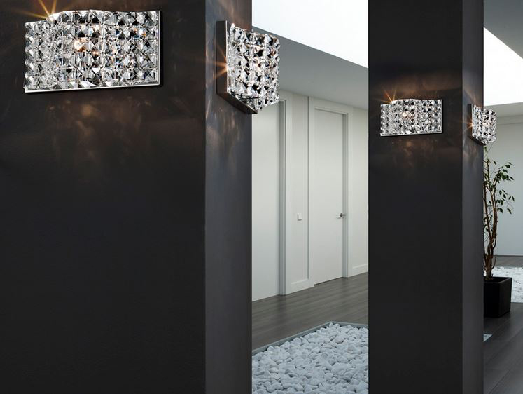 Applique en métal chromé et maille en verres à facettes K9 sertis. 1 G9