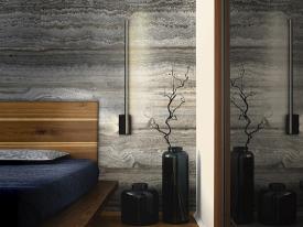 Applique en aluminium et métal, finition noir mat. Bras avec lumière LED et diffuseur en silicone opale, et deux spots latéraux LED, 17W LED, 1.400 lm, 3.000 K.