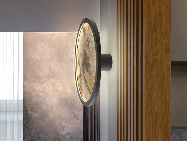 Applique ou plafonnier rond. En métal, finition en noir et ardoise multicolore, avec anneau en acrylique opale. Éclairage LED 25W, 334 lm, changement de couleur CCT, 3000/4000/6000K.
