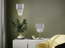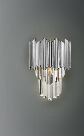 Applique murale en métal chromé. Abat-jour à prisme en verre à facettes avec garniture en abs chromé.