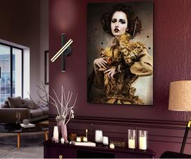 Lampe murale 3 lumières LED avec bras giratoire. Réalisée en métal finition or brillant et noir mat. Diffuseur acrylique opale. 15W, 1350 lm, 3.000 K. DIMMABLE.