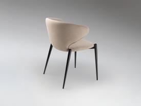 Chaise en métal, finition noir mat. Assise et dossier en contreplaqué et mousse. Revêtement en tissu 100% polyester beige. Nettoyage à sec uniquement.