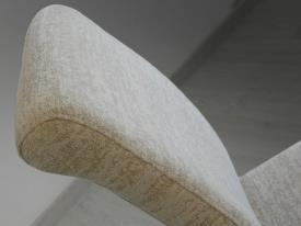 Chaise en acier inoxydable. Capitonnée en tissu de couleur beige. Composition du tissu: polyester 31%, coton 29%, soie 22%, laine 6%, autres fibres 12%. Nettoyage à sec uniquement.