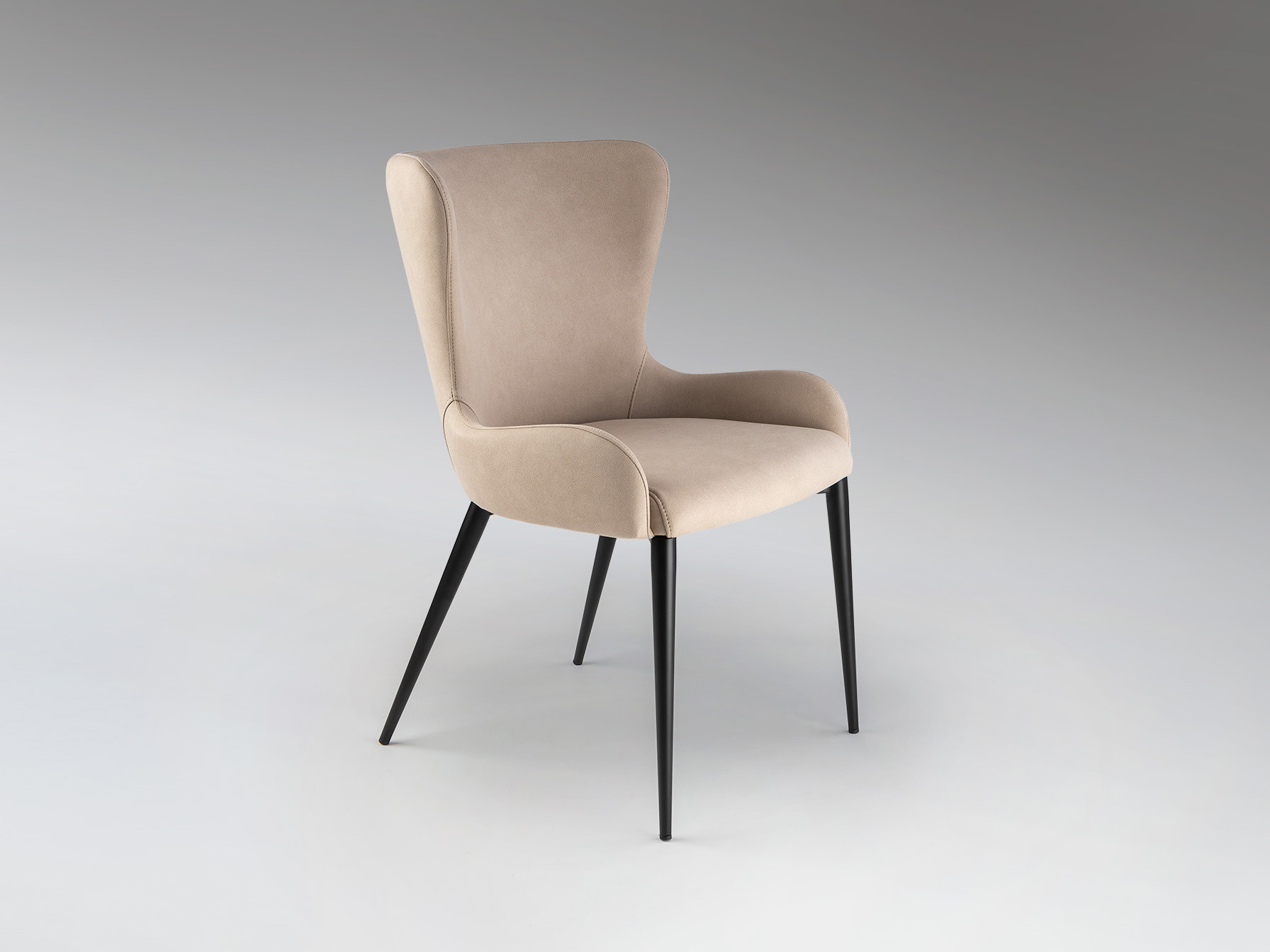 Chaise en métal, finition noir mat. Assise et dossier en contreplaqué et mousse. Revêtement textile 100% polyester de couleur beige. Nettoyage à sec.