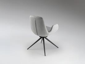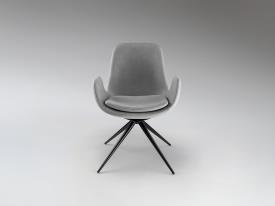 Chaise pivotante en métal, finition noir mat. Assise et dossier en contreplaqué et mousse. Mécanisme de pivotement avec retour automatique. Revêtement en tissu 100% polyester de couleur gris clair. Nettoyage à sec.
