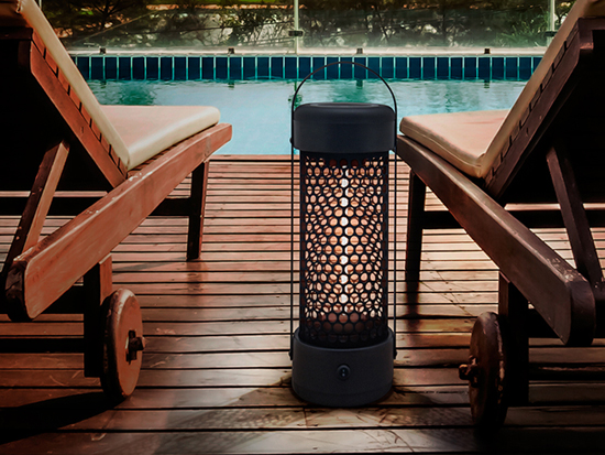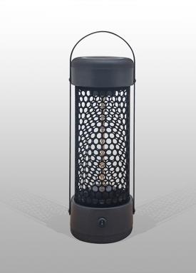 Réchaud électrique pour extérieur type lampadaire. Réalisé en métal et plastique, finition en noir. Avec grille protectrice spéciale et base métallique. Chauffage halogène de 1.200W. Câble : 1,8 m. IP55.
