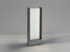 Grande balise pour l'extérieur. Fabriquée en fonte d'aluminium, finition gris foncé. Diffuseur : feuille de verre opale de 12 mm. Taux de protection : IP65. LED 18W, 490 lm, 3.000 K.