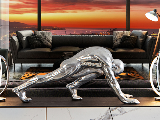 Figure grande asana argent Dimensions : l 92 x h 42 x p 36 cm Figure humaine grande. Réalisée en polyrésine, finition FEUILLE D'ARGENT. Matériau:Polyresin Finition:SILVER LEAF figure décorative