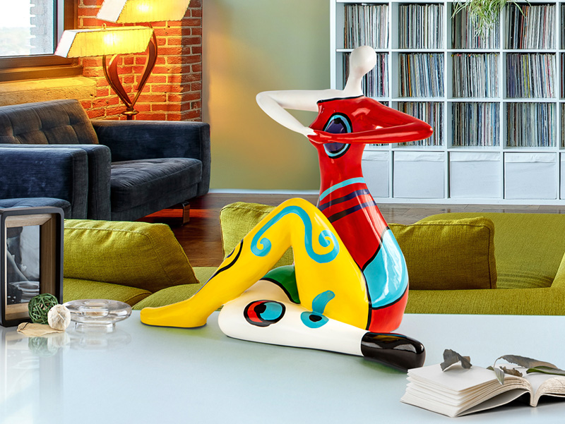 Femme- figurine moyenne décorée Dimensions : l 32 x h 51 x p 58 cm Figurine de femme, de taille moyenne, en résine. Décoration POP. Matériau: Resin Finition: Colour paints figure décorative