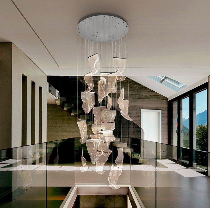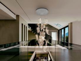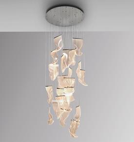 Lampe GRAND FORMAT en métal chromé, et tulipes en méthacrylate moulé et micro imprimé. Éclairage LED. DIMMABLE,. 120W, 7200 lm, 3.000K. Inclut un driver TRIAC et un SET DIMMAGE.