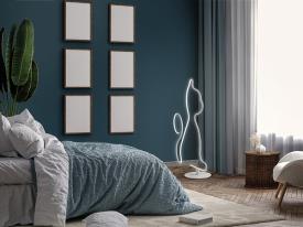 Lampadaire en métal et aluminium, finition blanc mat. Diffuseur en silicone opale. LED 43W, 3.600 lm, 3.000K.