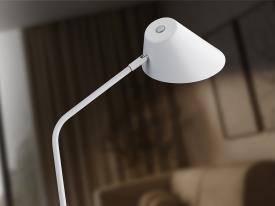 Lampadaire, en métal et aluminium, finition blanc mat, diffuseur opale. Bouton tactile et TÉLÉCOMMANDE. Projecteur réglable, lumière à intensité variable, température de couleur réglable. LED 10W, 900 lm, CCT 3000K-6500K.