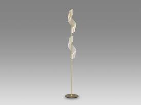 Lampadaire en métal et en aluminium, finition or mat. Diffuseurs courbes en méthacrylate micro-imprimé. 18W LED, 1.150lm, 3.000K.