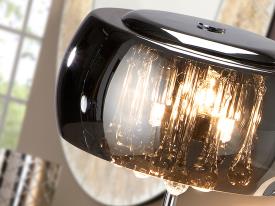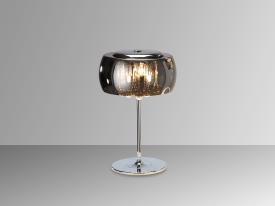 Lampe de table réalisée en métal finition chrome. Tulipe en verre sans tain. Larmes intérieures en verre type Murano.
