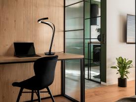 Lampe de table en métal et aluminium finition noir mat sablé. Diffuseur opale en silicone. LED de 21W. 780 lm. 3.000 K. DIMMABLE.