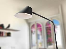 Lampe de table, en métal et aluminium, finition noir mat, diffuseur opale. Bouton tactile et TÉLÉCOMMANDE. Projecteur réglable, lumière à intensité variable, température de couleur réglable. LED 12W, 1300 lm, CCT 3000K-6500K.