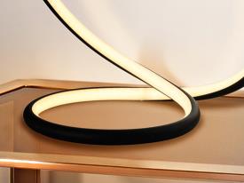 Lampe de table réalisé en aluminium finition noir mat sablé. Diffuseur opale en silicone. 15W LED. 750 lm. 3.000 K. DIMMABLE.