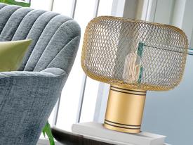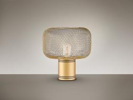 Lampe de table 1 lumière en métal, avec tulipe en maille métallique, finition peinture dorée.
