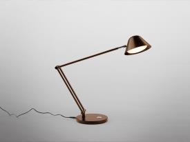 Lampe de table avec bras articulé, en métal et aluminium, finition bronze foncé. Bouton tactile. Lumière graduable, température de couleur réglable. LED 10W, 900 lm, CCT 3000-6500K.