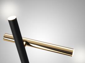Lampe de table 2 lumières LED. Réalisée en métal finition or brillante et noir mat. Diffuseur acrylique opale. 10W LED, 900 lm, 3.000 K.