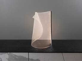 Lampe de table réalisée en métal chromé et tulipe en méthacrylate micro-imprimé moulé. Éclairage LED 10W 600lm 3.000K.