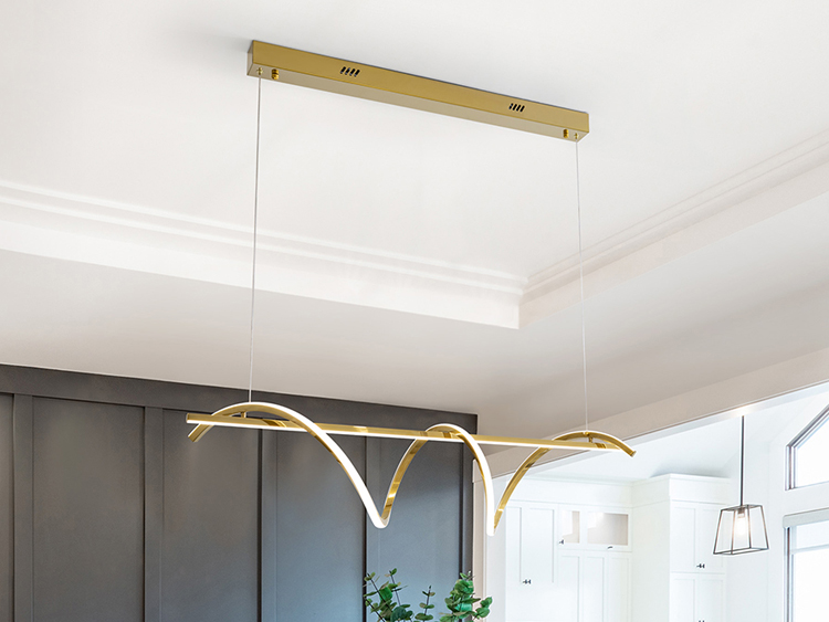 Lampe en acier inoxydable avec finition doré brillant. Diffuseur en silicone opale. Hauteur réglable. LED 63W, 4.460lm, 3.000K. DIMMABLE.