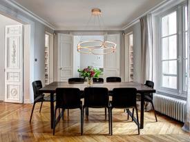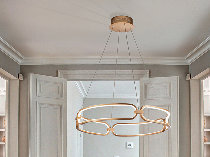 Plafonnier LED petit, réalisé en aluminium brossé, finition or rose. Diffuseurs en silicone opale. 54W LED, 4.860 lm, 3.000 K. DIMMABLE. Télécommande incluse.
