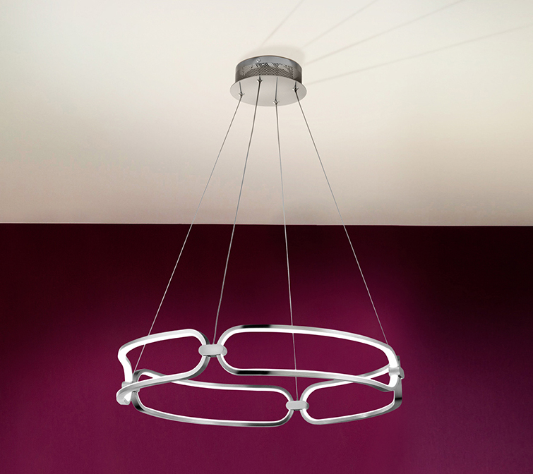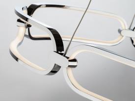Lampe LED, réalisée en aluminium finition chrome. Réglable en hauteur. Diffuseurs en silicone opale. 54W LED, 4.860 lm, 3.000 K. DIMMABLE.