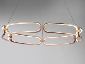 Lampe LED grande, réalisée en aluminium brossé, finition or rose. Diffuseurs en silicone opale. Réglable en hauteur. 65W LED, 5.850 lm, 3.000 K. DIMMABLE. Télécommande incluse.