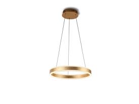 Lampe réalisée en métal et aluminium, finition FEUILLE D’OR. Cerceau avec diffuseur en acrylique opale. Hauteur réglable. 55W LED. 3.000K. 3.300 lm