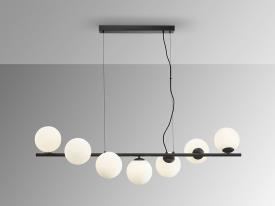Lampe en métal, finition noir mat. Tulipes sphériques en verre opale à l'acide. Réglable en hauteur.