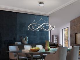 LED lamp made of aluminium, chrome finish. Opal silicone diffusers. Adjustable height. 45W, 4050 lm. 3000 K. DIMMABLE. Remote control included.