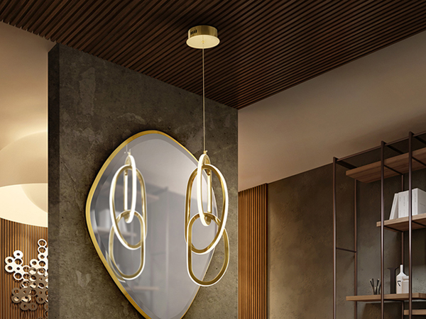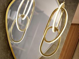 Lampe en acier inoxydable, finition or brillant. Diffuseur en silicone opale. Hauteur réglable. LED 39W, 3.360lm, 3.000K. DIMMABLE.