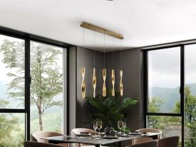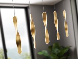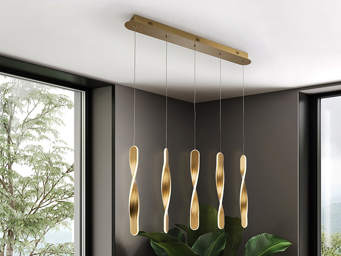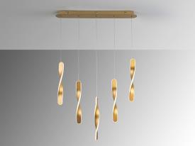 Lampe 5 lumières en métal avec finition or brossé. Diffuseur en silicone opale. 50W, 3400 lm, 3000k. DIMMABLE.