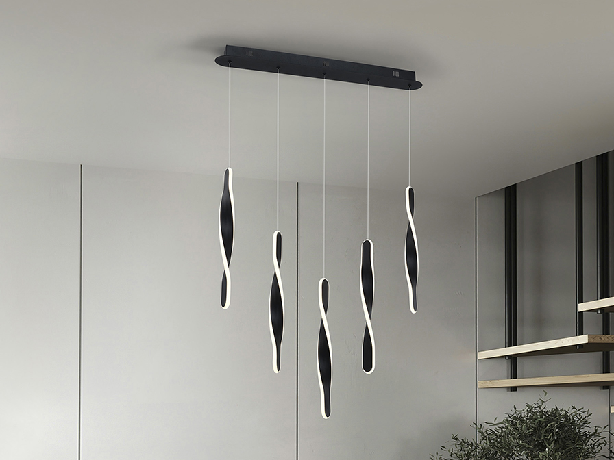 Lampe 5 lumières en métal, finition noir mat. Diffuseur en silicone opale. 50W, 3400 lm, 3000k. RÉGLABLE EN INTENSITÉ.