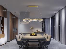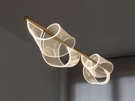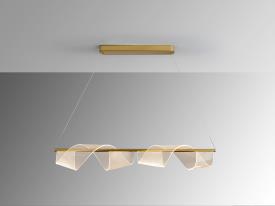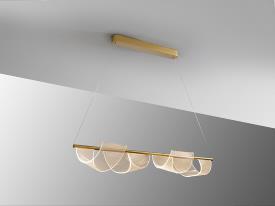 Lampe en métal et aluminium, finition or mat. Diffuseur incurvé en méthacrylate micro-imprimé. Hauteur réglable. LED 21W, 1.200 lm, 3.000K.