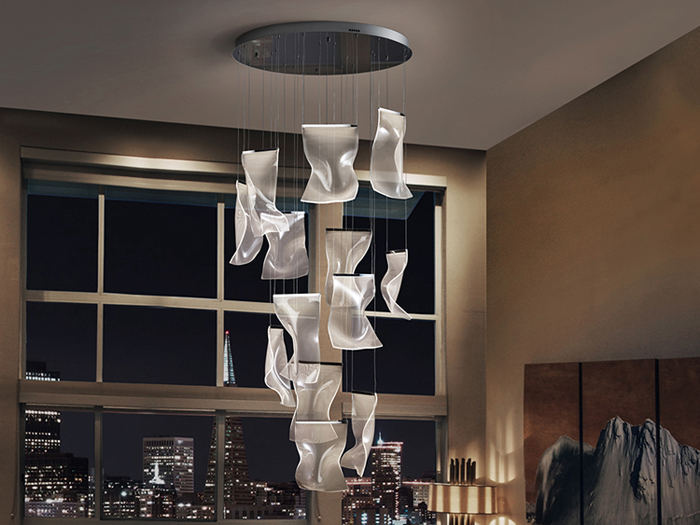 Lampe en métal chromé et tulipes en méthacrylate moulé micro-imprimé. Éclairage LED. DIMMABLE,. 63W, 3 780 lm, 3 000K. Comprend le driver TRIAC et DIMADO SET. MODÈLE NON DISPONIBLE POUR LE TERRITOIRE FRANÇAIS. EXCLUSIVITÉ XXL COMPANY.