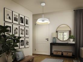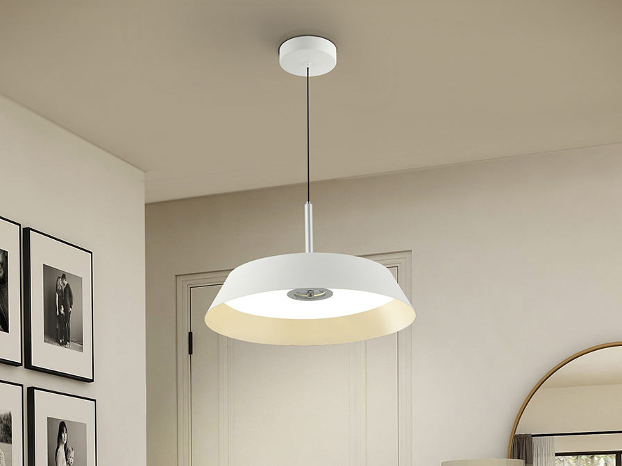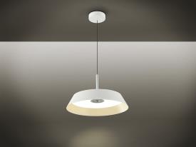 Lampe à LED en métal finition en peinture mate, blanc et argent. Abat-jour à inclinaison réglable et diffuseur en méthacrylate opale. LED 24W, 2.160 lm, 3.000K.