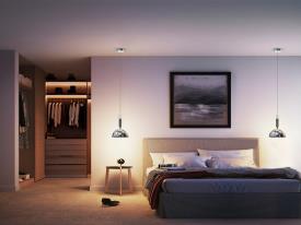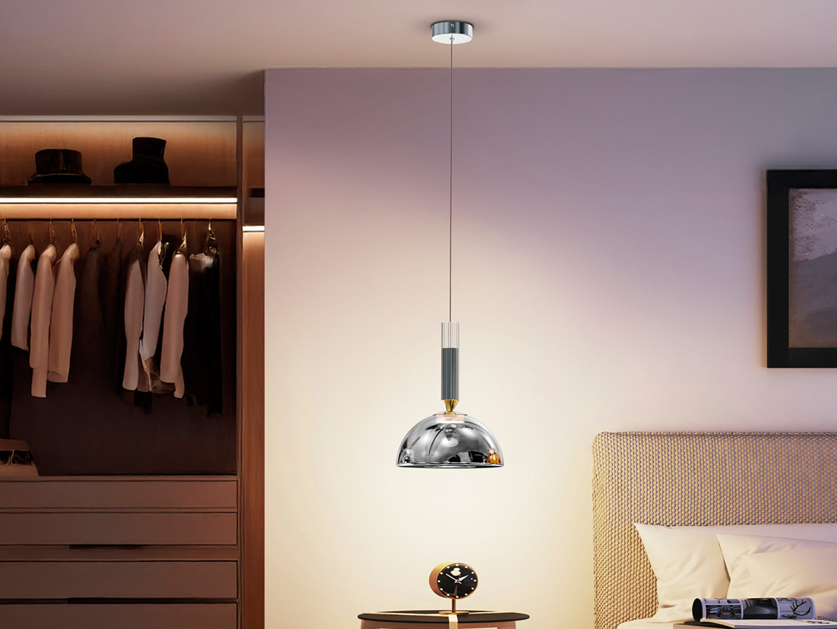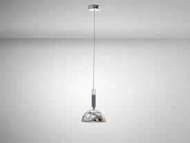 Lampe 1 lumière, en aluminium brossé, finition gris foncé. Tulipe en verre avec bain électrolytique, ton argent, , avec lumière LED et diffuseur en acrylique opale. 6W LED, 220 lm, 3000K