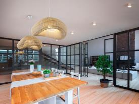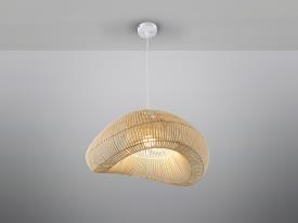 Lampe à une lumière, en métal, finition blanche. Abat-jour en rotin, finition naturelle.