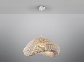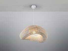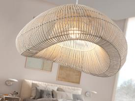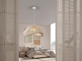 Lampe à une lumière en métal avec abat-jour en rotin, finition blanc patiné.