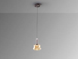 Lampe 1 lumière, en aluminium brossé finition bronze foncé. Tulipe en verre miroir avec bain électrolytique dans les tons ambrés, avec lumière LED et diffuseur en acrylique opale. LED 6W, 190 lm, 3000K
